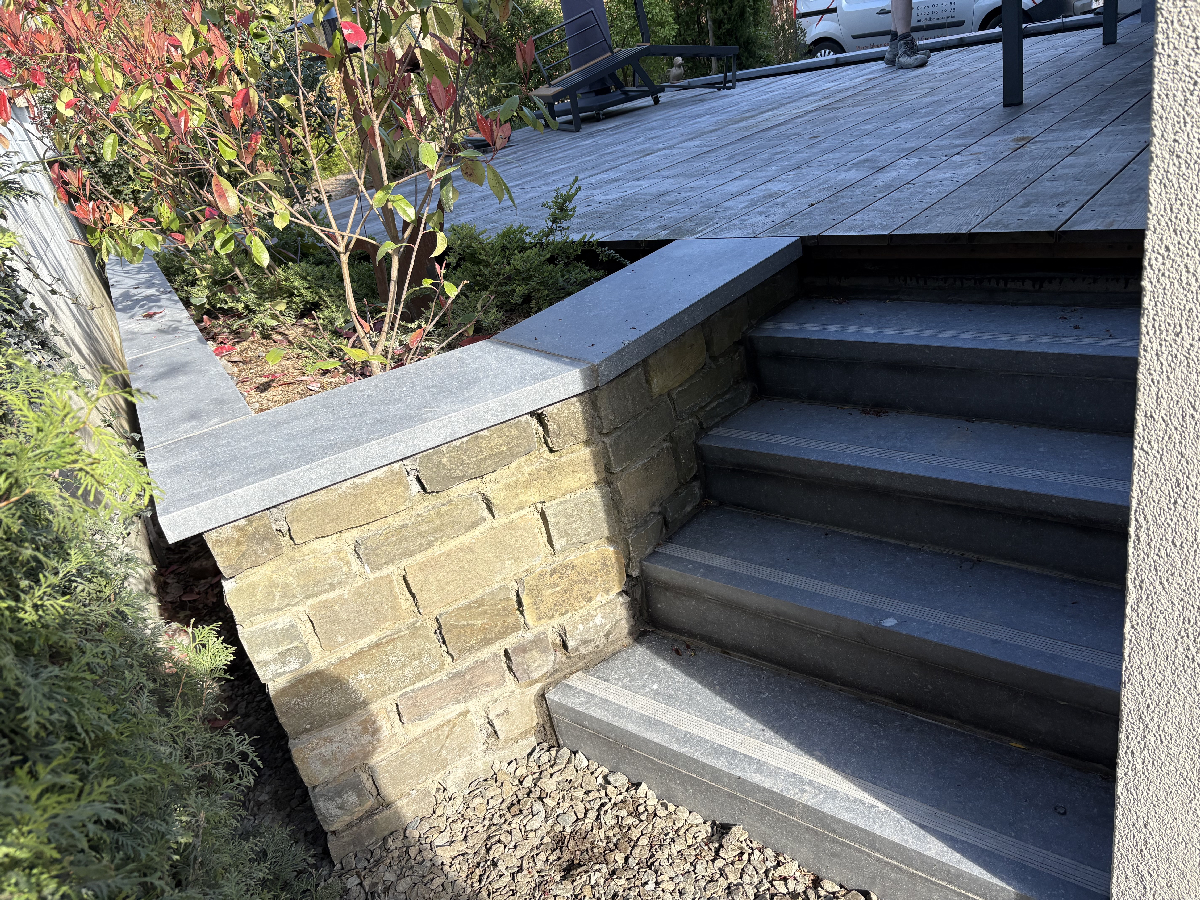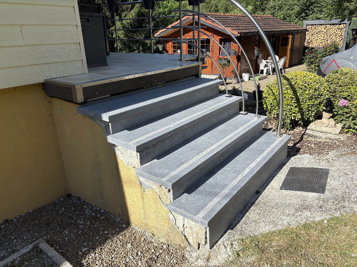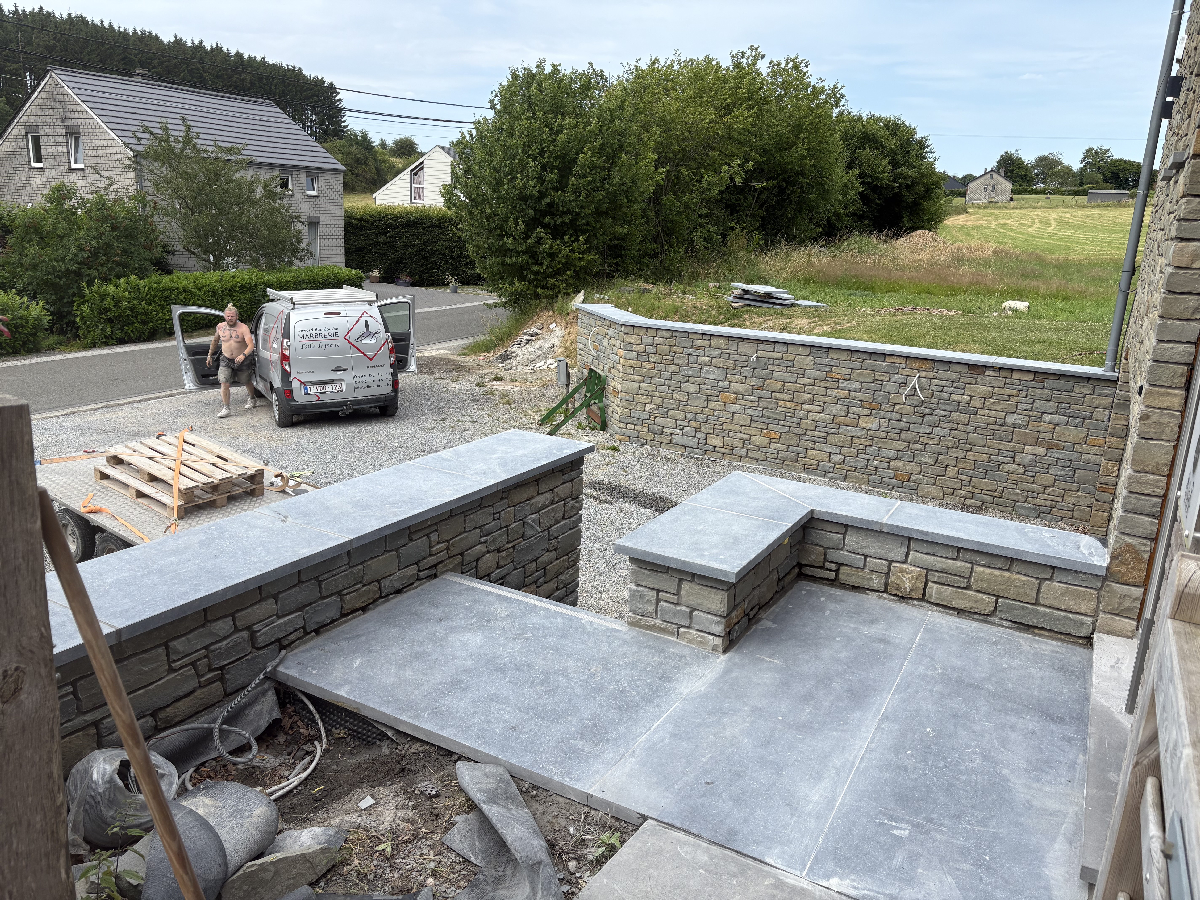 Notre entreprise réalise une large gamme de projets, incluant la fourniture et l’installation de pierres bleues belges, seuils, couvre murs, encadrements, margelles de piscines, dallages et plans de travail. Nos interventions couvrent Trooz, Chaudfontaine et toute la Wallonie.